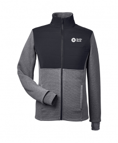 Pillow tech fabric: quilted, lightweight with warmth-retaining fill; Encore double-knit fleece with woven insulation for warmth and comfort.
