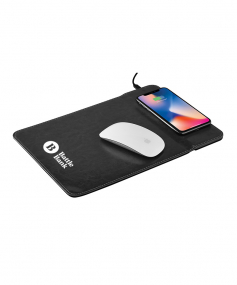 Wireless charging and standing of your smart phone can be accomplished with this thick leatherette mouse pad. Complies with Prop 65. 8.3125" W x 11.625" H x 0.3125" D
